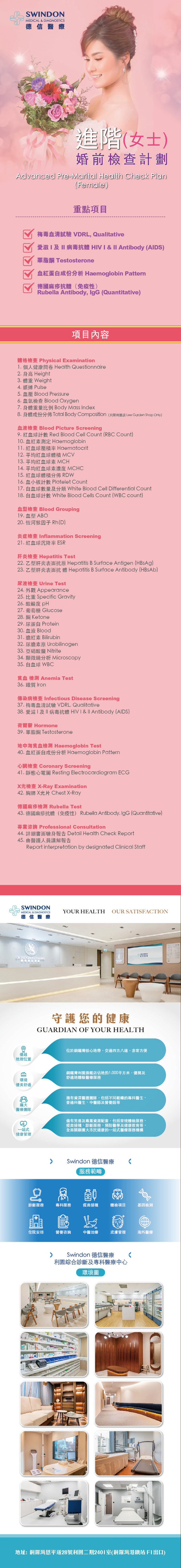 • 重點項目:梅毒血清試驗、愛滋 I 及 II 病毒抗體、睪脂酮、血紅蛋白成份分析、德國麻疹抗體(免疫性)