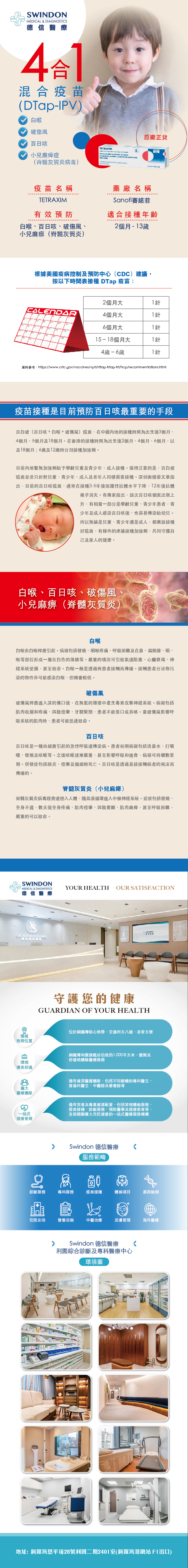 • 白喉、破傷風、無細胞型百日咳及滅活小兒麻痺混合疫苗
